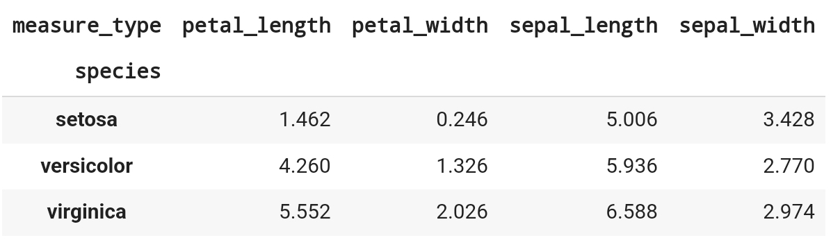 - iris_long을 활용하여 species와 measure_type별 평균을 구하라