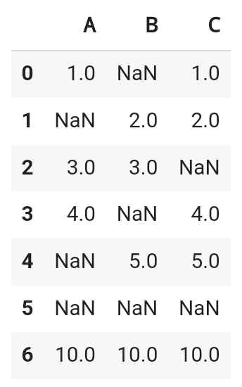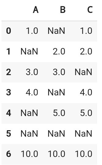 df.dropna() #하나라도 빈값이 있다면 그 행은 drop