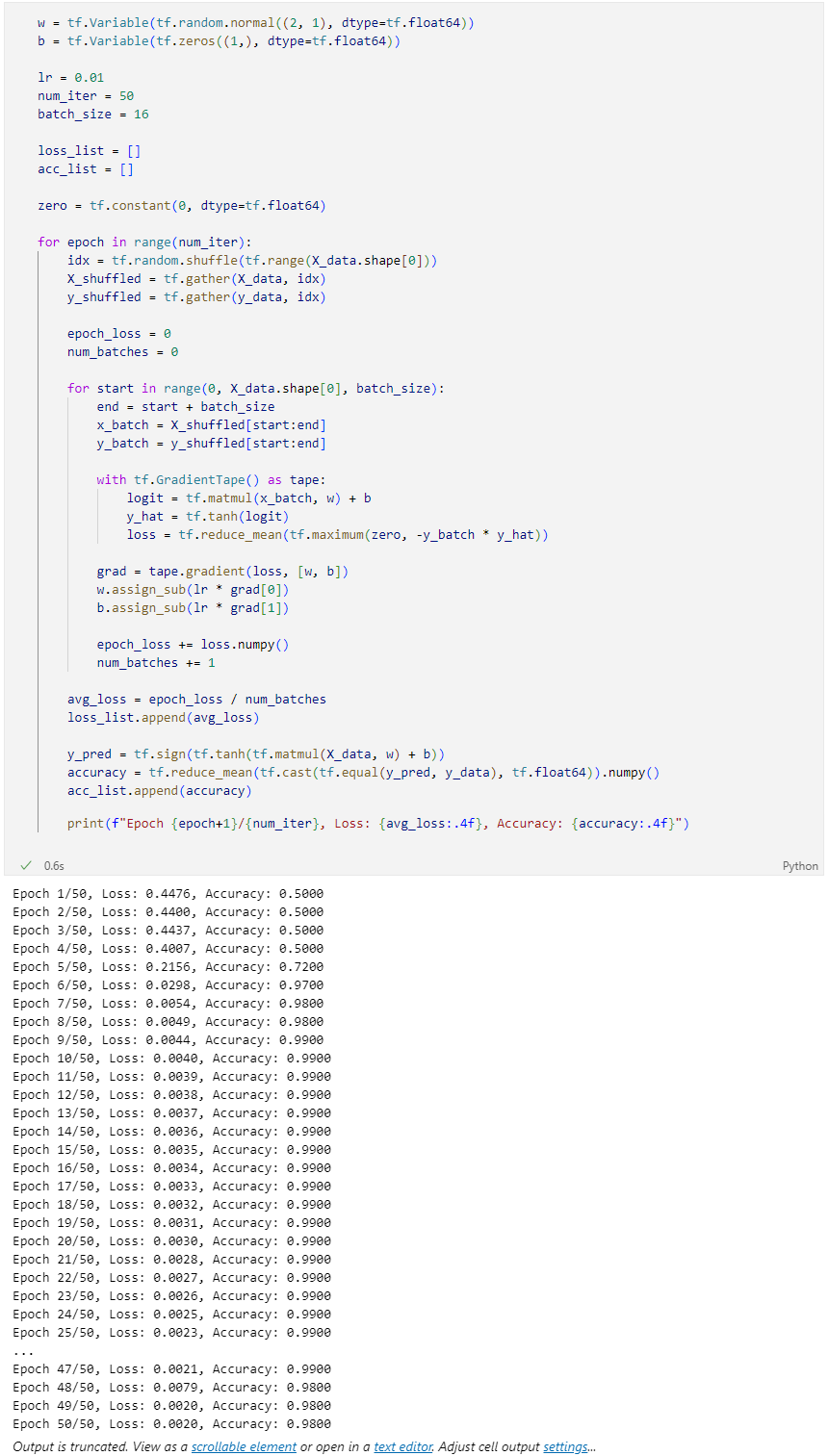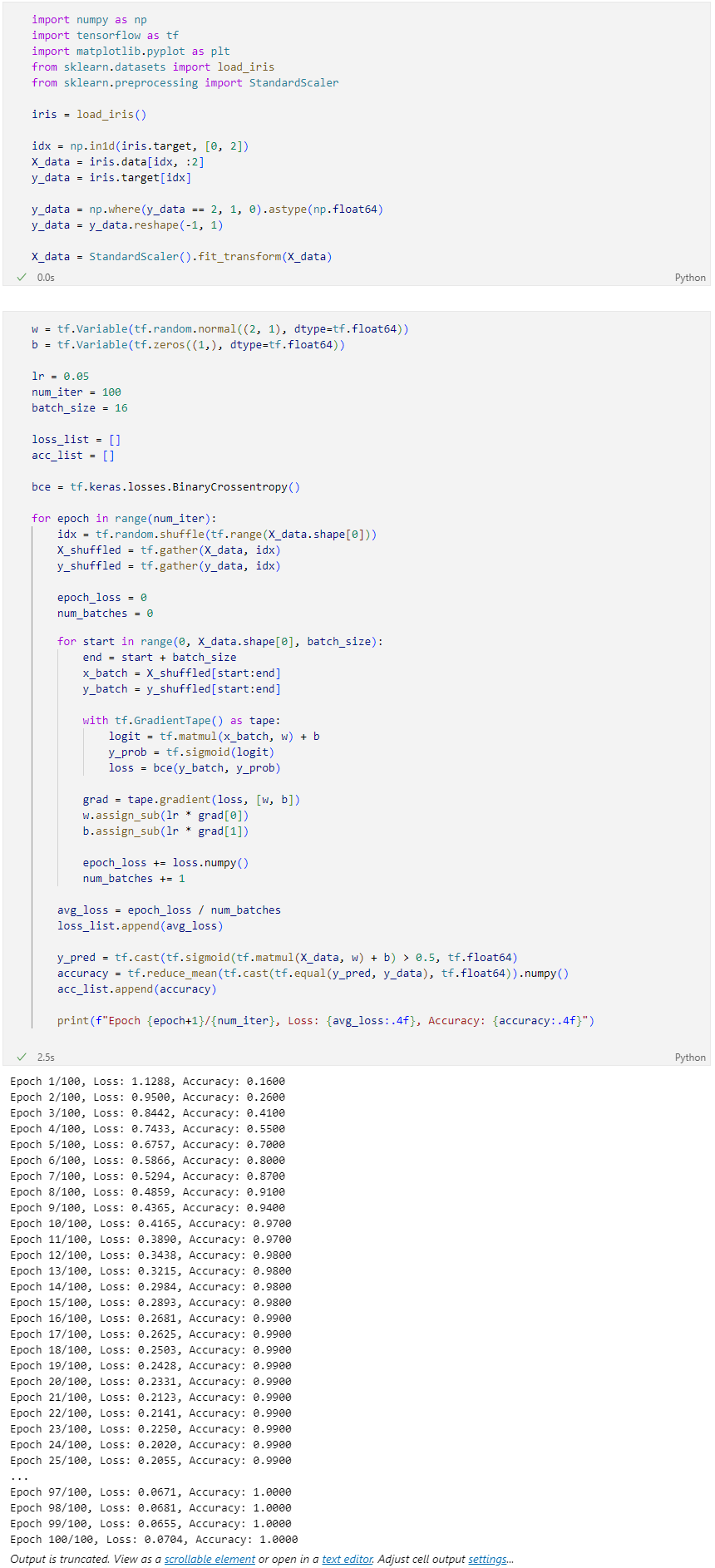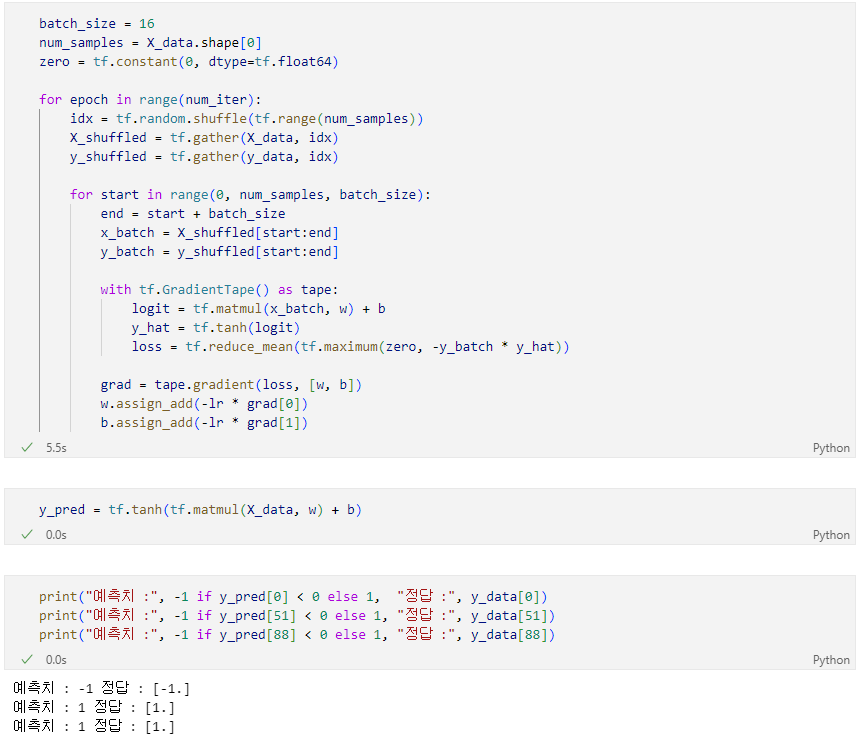 | 손실 계산 | 샘플 1개씩 | 전체 평균 손실 사용 (reduce_mean) |