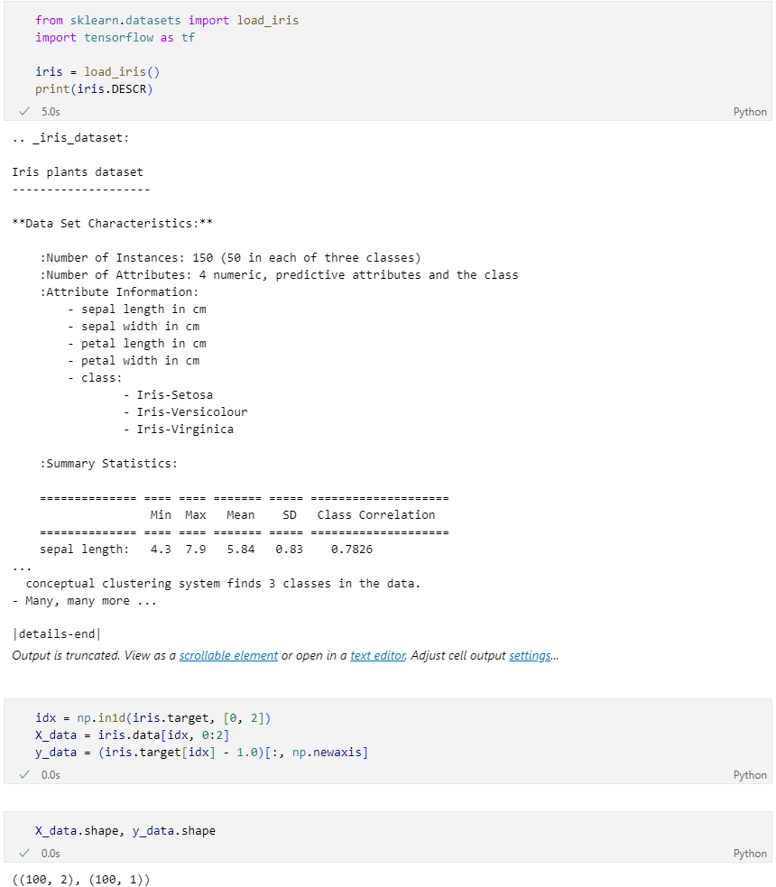 이번엔 Iris 데이터 중 두 종류를 분류하는 퍼셉트론을 제작한다. y값은 1 또는 -1을 사용하고 활성화 함수로는 하이퍼탄젠트(hypertangent)함수를 사용한다.
