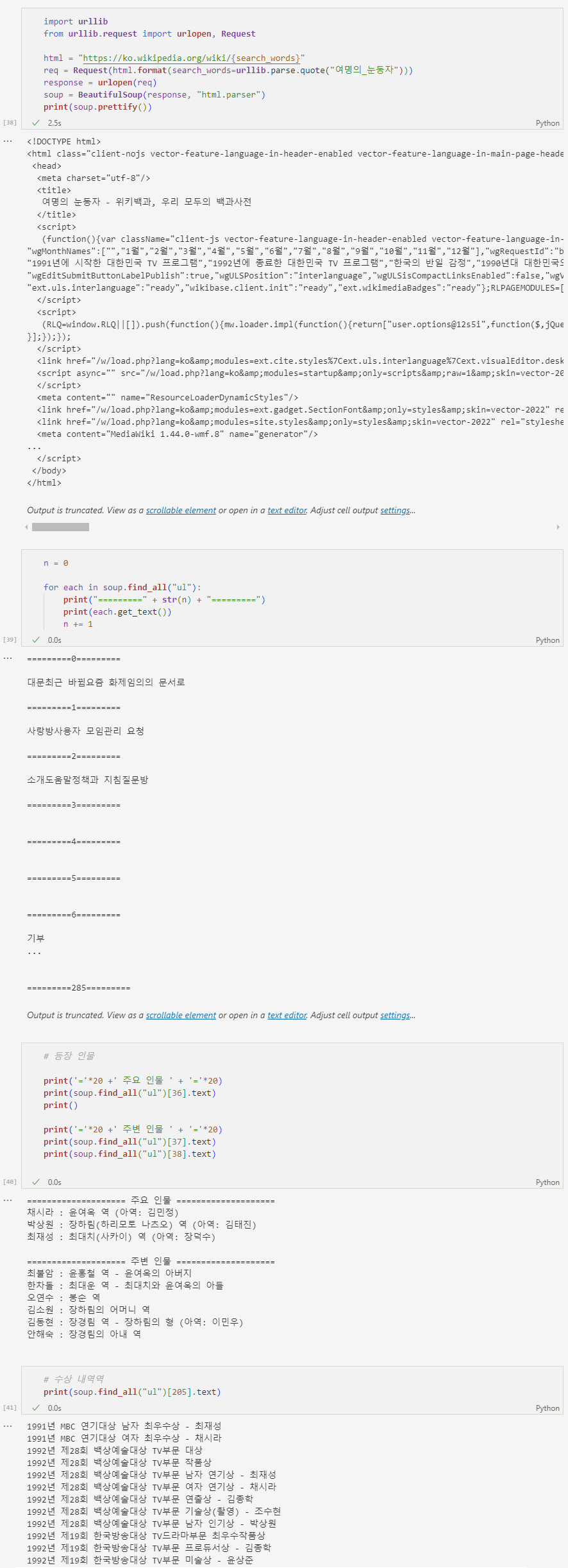 BeautifulSoup 예제2 - 위키백과 문서 정보 가져오기