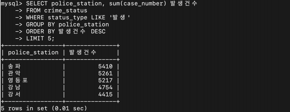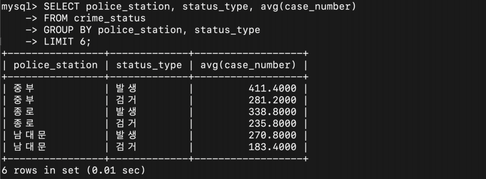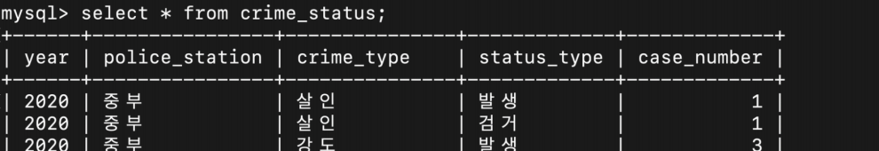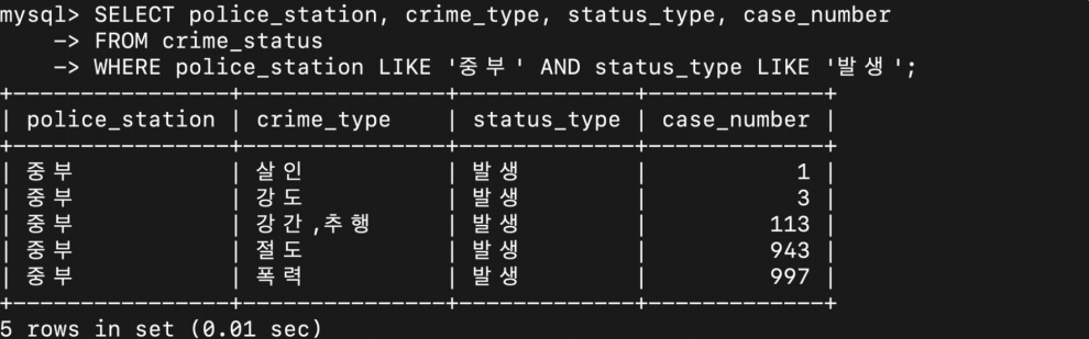 WHERE police_station LIKE '중부' AND status_type LIKE '발생';