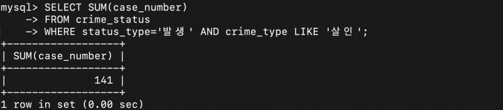 WHERE status_type='발생' AND crime_type LIKE '살인';