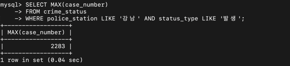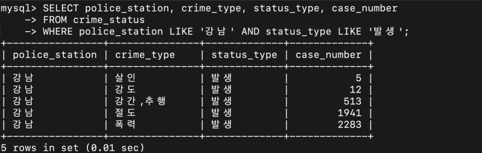 WHERE police_station LIKE '강남' AND status_type LIKE '발생';