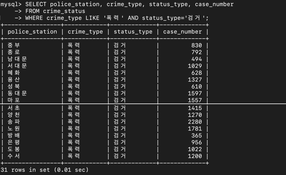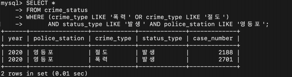 WHERE (crime_type LIKE '폭력' OR crime_type LIKE '절도')