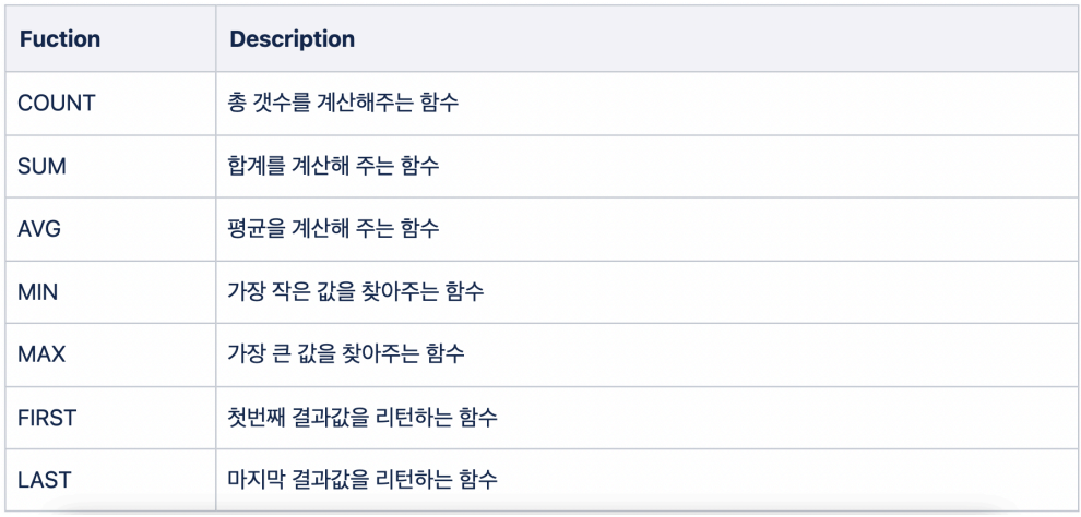 SUM : 숫자 칼럼의 합계를 계산해주는 함수