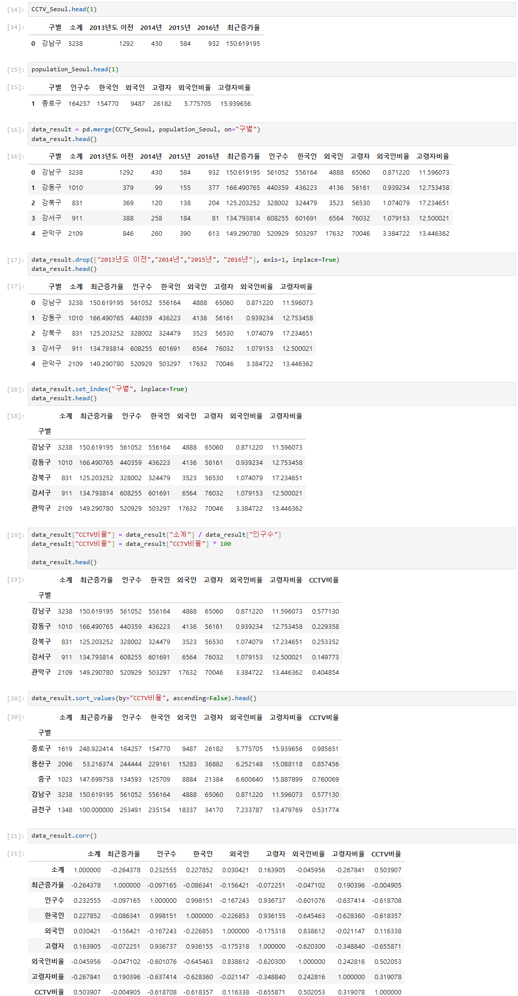 3. CCTV DATA + 인구현황 DATA
