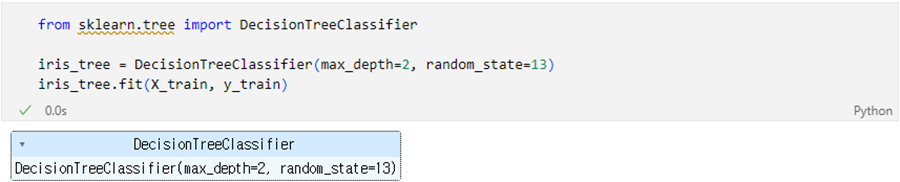 train 데이터만 대상으로 의사결정나무 모델 생성