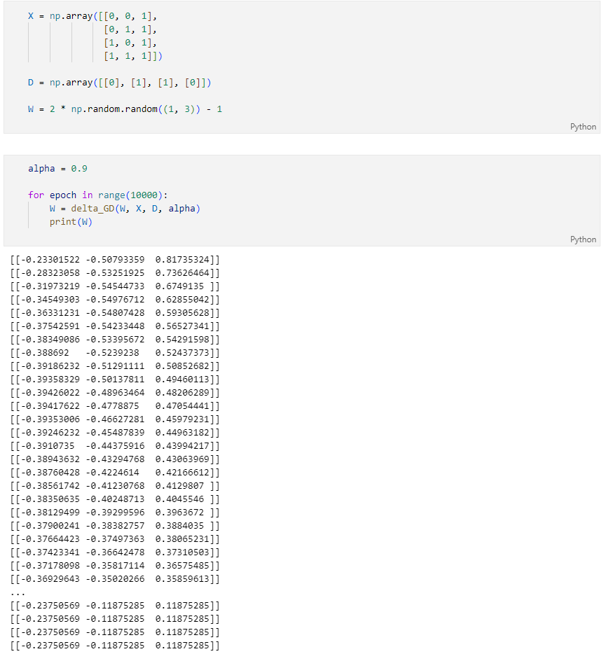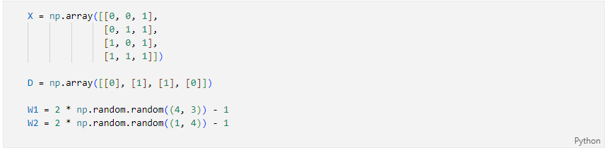데이터를 준비하고 가중치를 랜덤하게 초기화