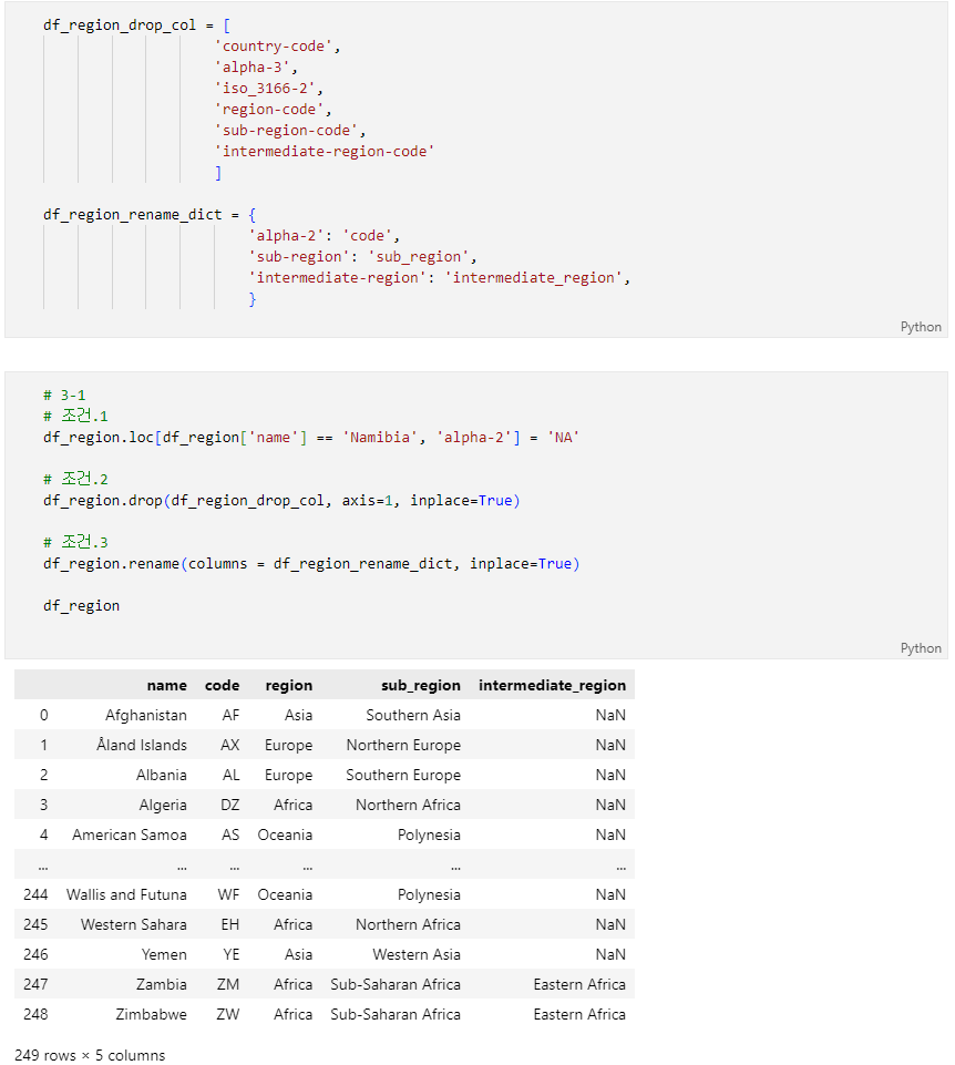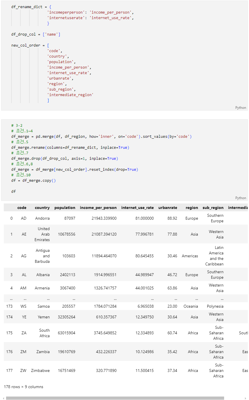 2단계의 DataFrame(df)과 3-1의 DataFrame(df_region)을 아래의 조건에 맞게 합치세요.