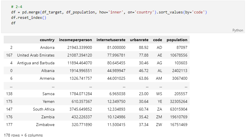 1단계의 DataFrame(df_target)과 2-3의 DataFrame(df_population)을 아래의 조건에 맞게 합치세요.