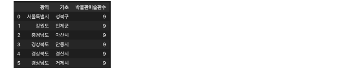 | 5 | 전국 박물관/미술관 정보 표준 데이터 | ⭐️⭐️⭐️ | 👈 |