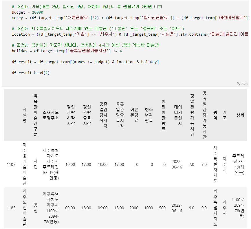 3단계의 DataFrame(df_target)을 이용하여 아래의 조건에 맞는 정보를 구하세요.