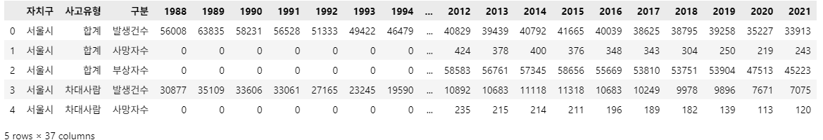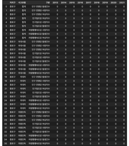 columns = ['사고유형', '구분', '연도', '자치구', '값']
