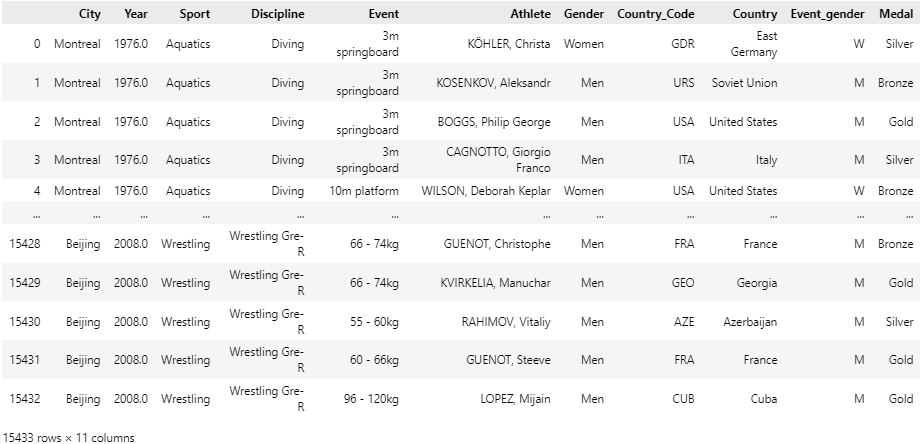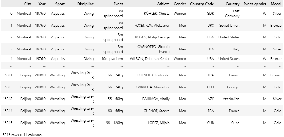 df_kor = df_kor.drop_duplicates(["City","Year","Sport","Discipline","Event",
