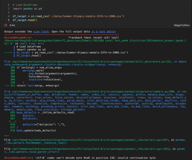 위에 제시된 링크 혹은 datas 폴더에 있는 데이터(Summer-Olympic-medals-1976-to-2008.csv)를 Pandas DataFrame으로 읽어 오세요.