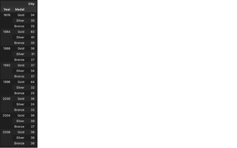 조건1: Index는 Year - Medal로 보여주세요(아래 예시 참고)