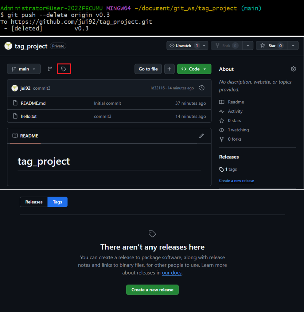 Git Tag 생성 2 실습 : Tag 를 Remote Repository 에 Push