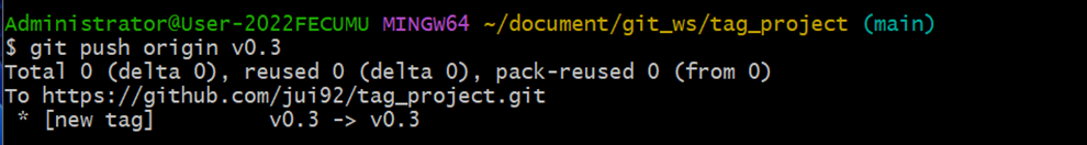 Git Tag 생성 3 : Tag 를 Remote Repository 에 Push