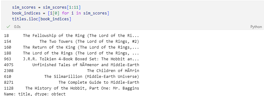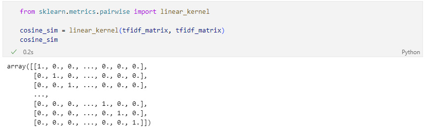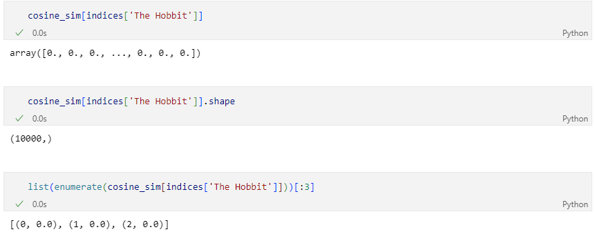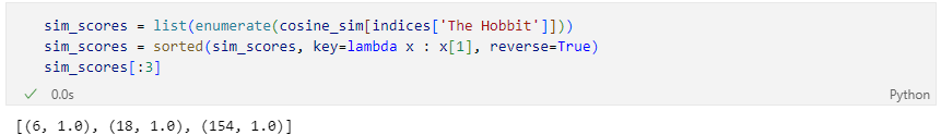 유사도 결과를 인덱스를 가진 list형으로 생성