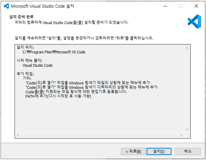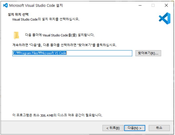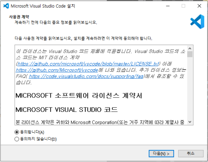 다운로드 받은 파일 (VSCodeSetup-x64-1.62.0.exe) 실행 > 예