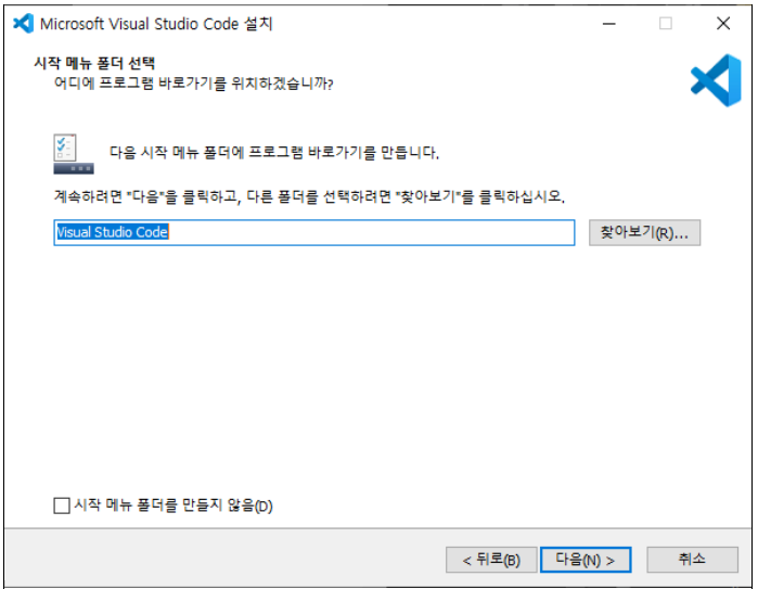 시작 메뉴 폴더 선택 > 다음