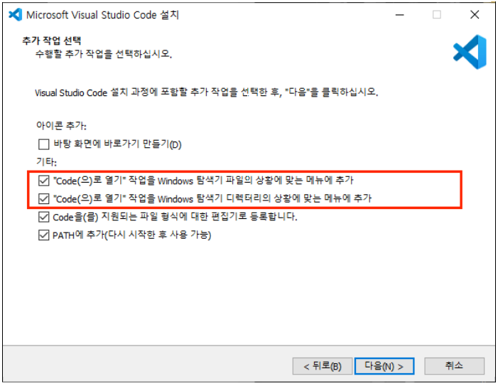 사용상 편의를 위해 기타 항목 모두 선택 > 다음