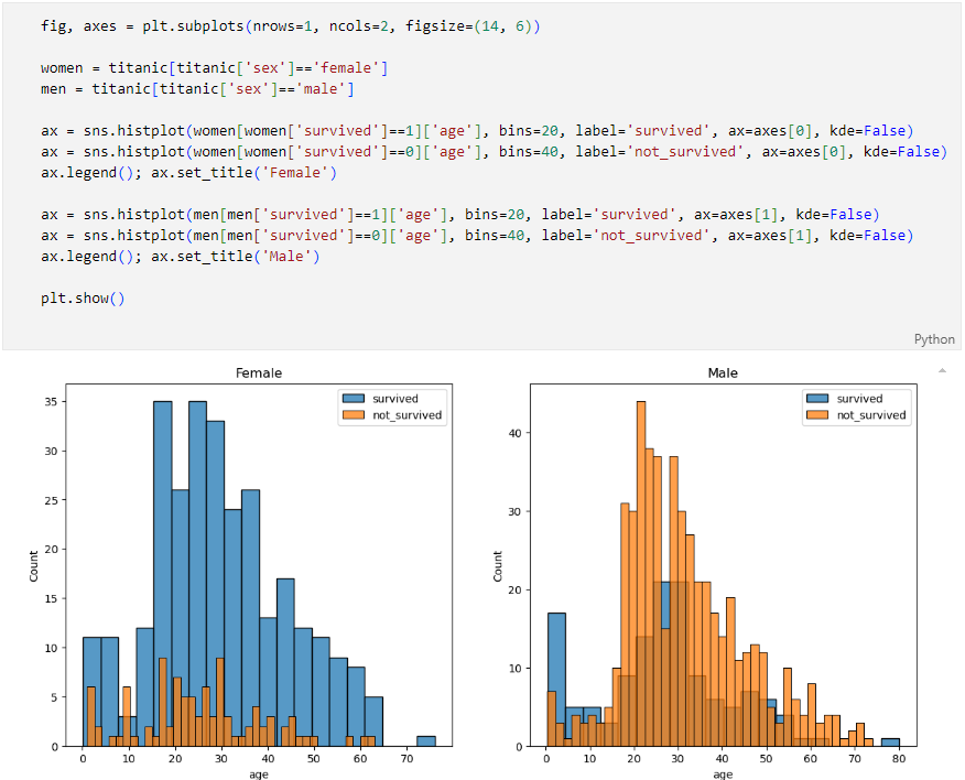 10. 남/여 나이별 생존 상황을 보다 더 들여다보자