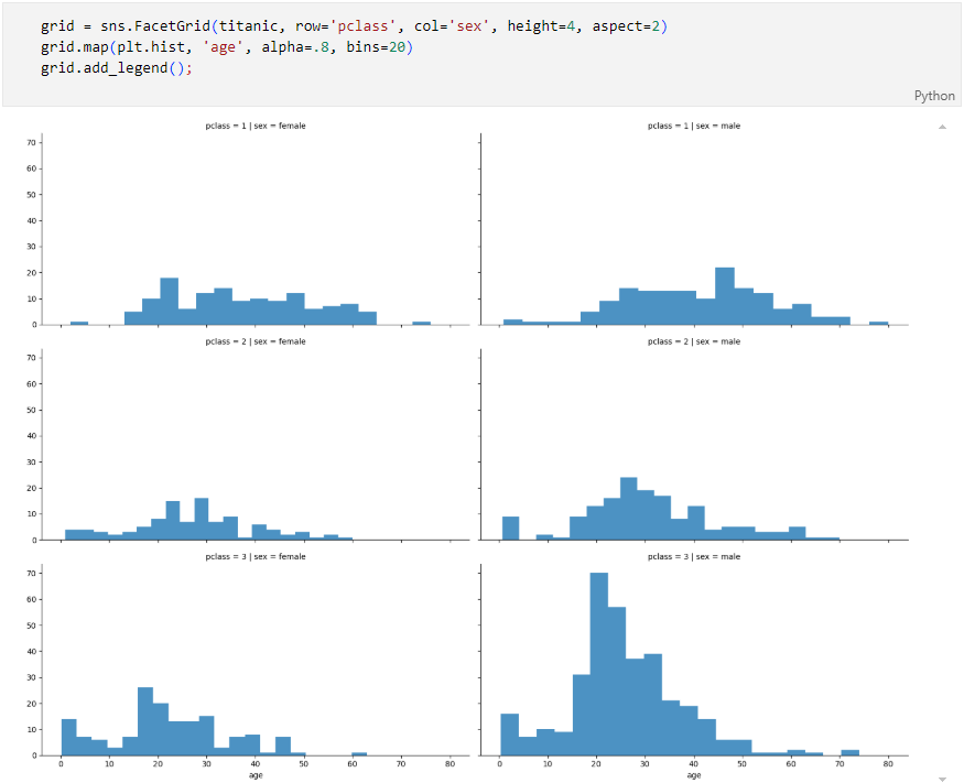 5. 선실 등급별 성별 상황 → 3등실에는 남성이 많았다. (특히 20대 남성)