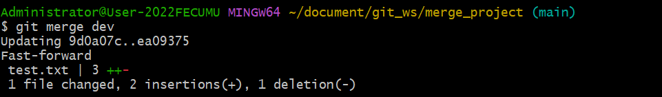 Git Merge : 현재 위치한 Branch 에 다른 Branch 를 병합