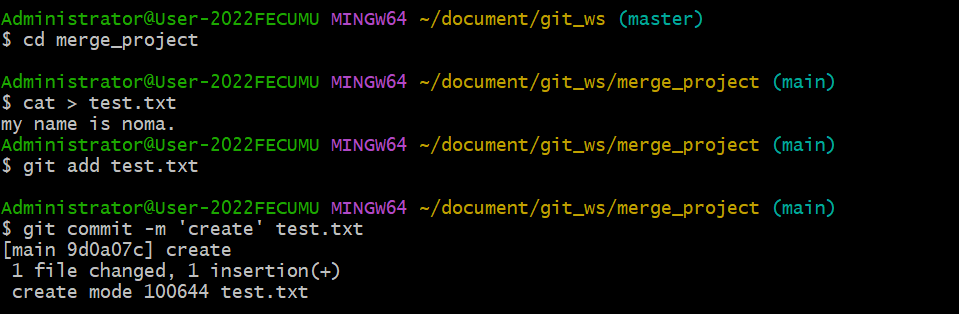 Conflict Test 를 위한 Branch 생성 : Hello, noma 를 카피(이동X)
