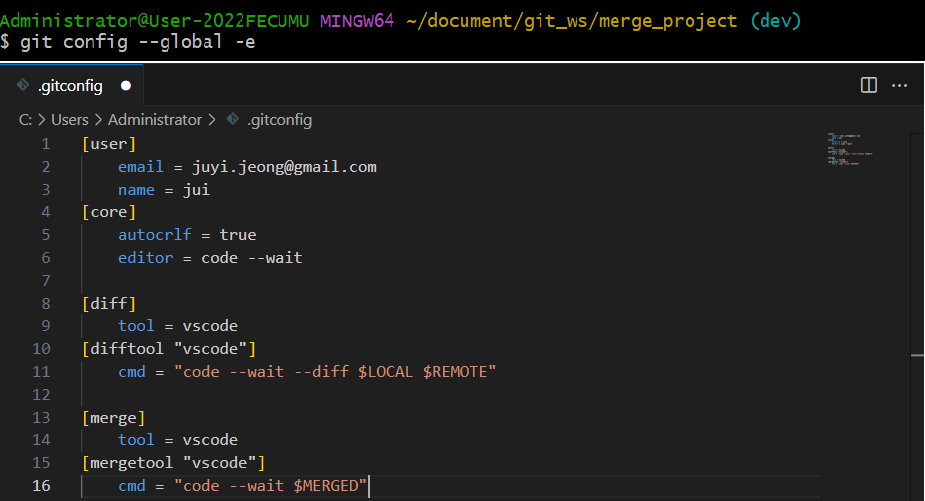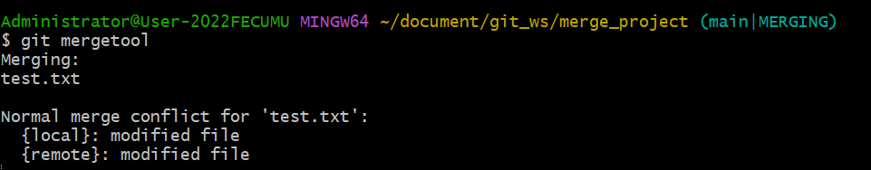 MergeTool 실행 : Conflict 발생 이후 아래와 같이 MergeTool 을 실행하면 Conflict 난 파일들이 차례로 열림