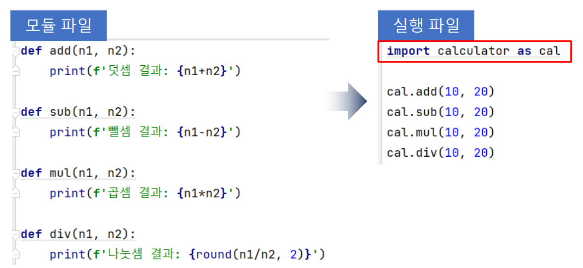 as 키워드를 이용해서 모듈 이름을 단축 시킬 수 있다.