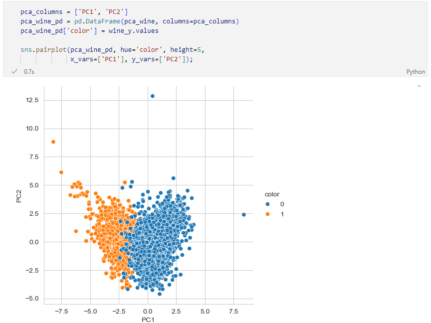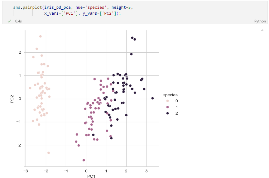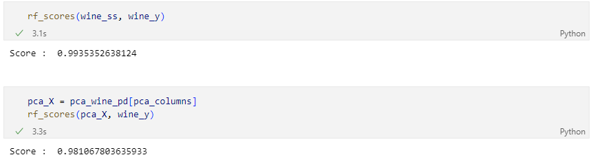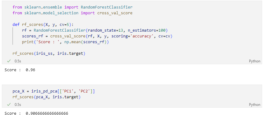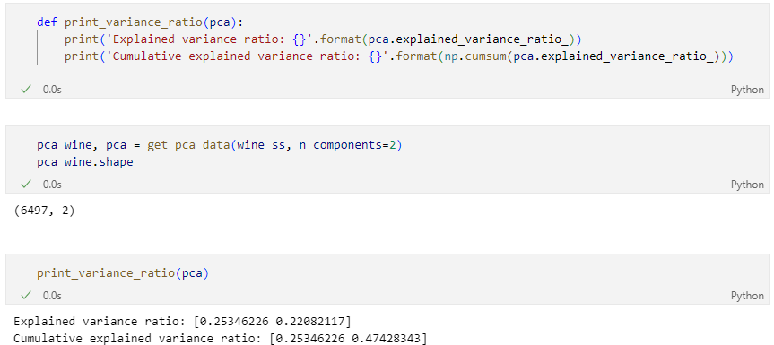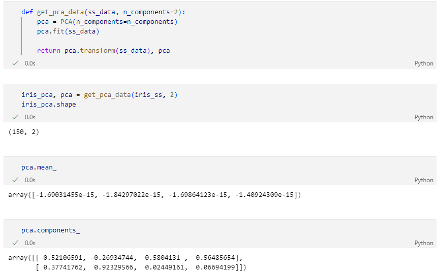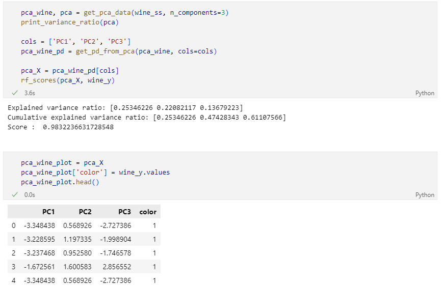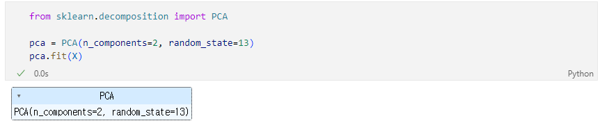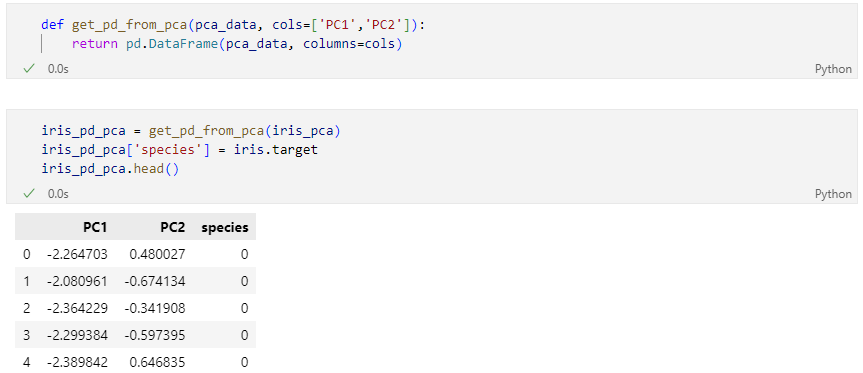 pca 결과를 return하는 함수 적용 후 return값 확인