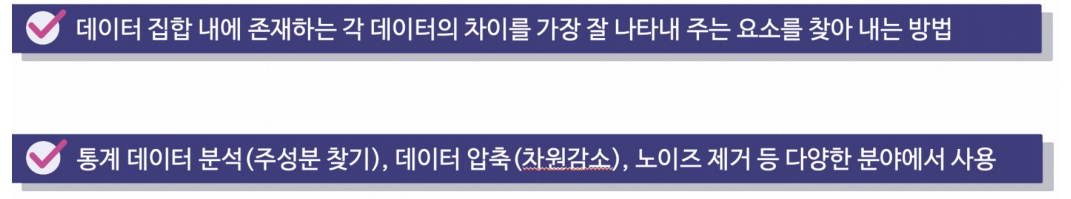 - 차원축소(dimensionality reduction)와 변수추출(feature extraction) 기법으로