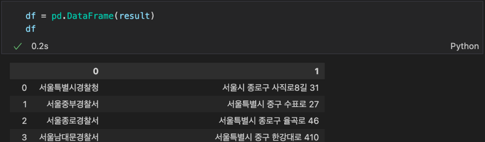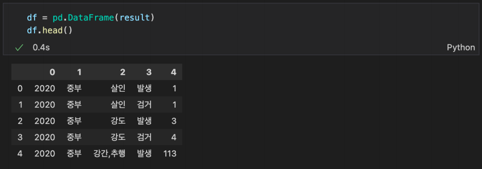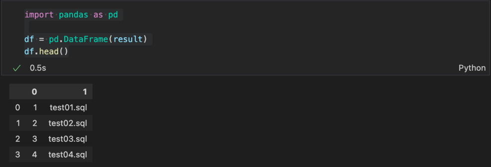 조회한 결과를 Pandas 로 변환해서 확인
