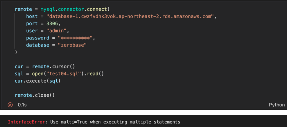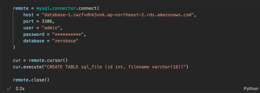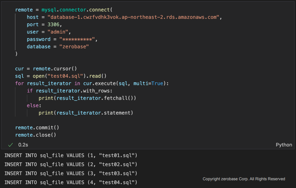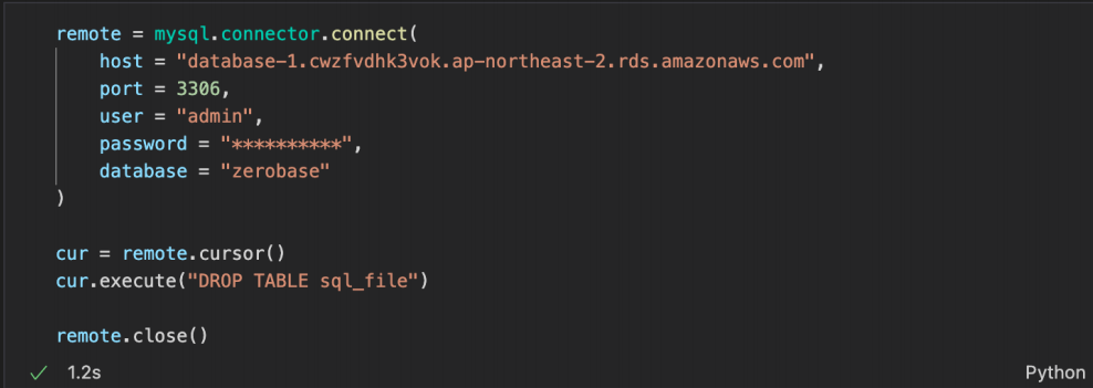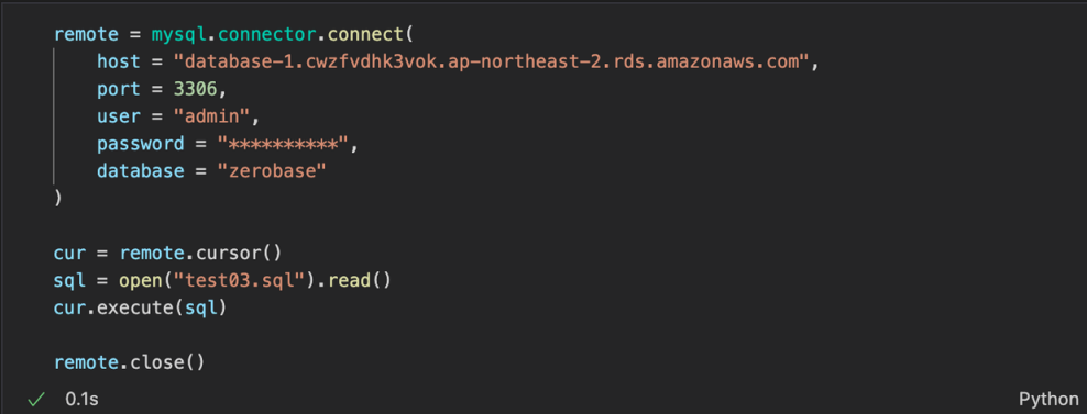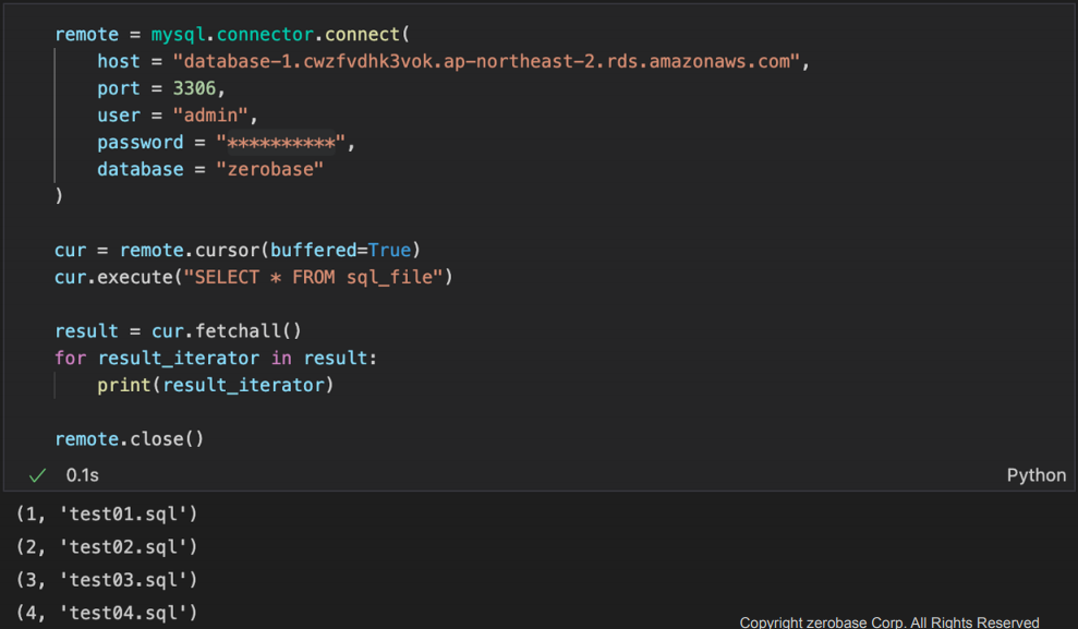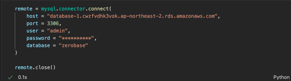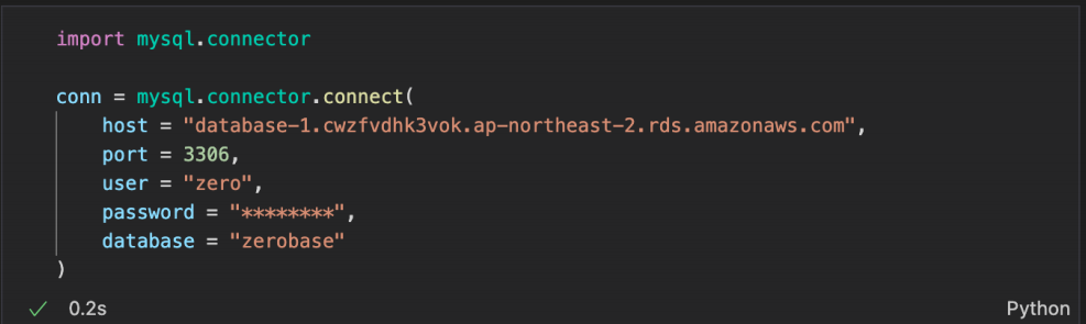 예제 2 : AWS RDS (database-1) 의 zerobase 에 연결