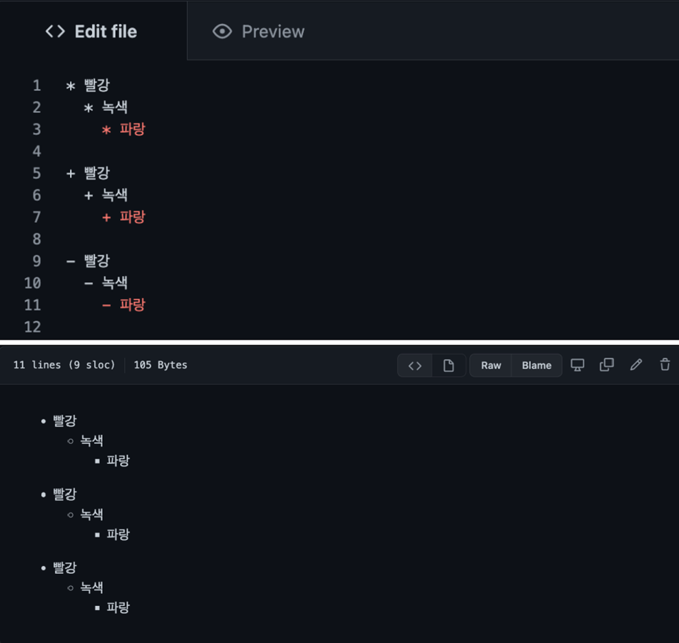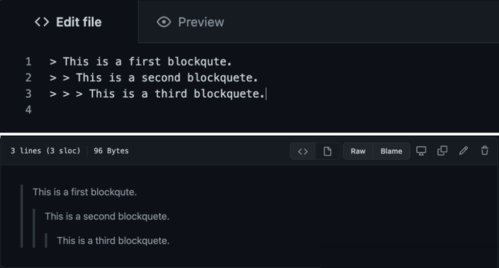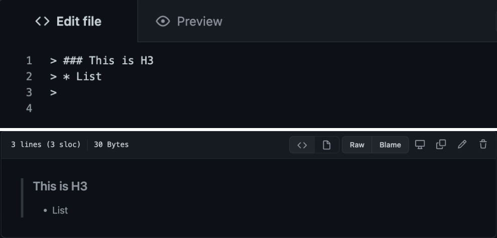 혼합 - 블럭 내에서 다른 Markdown 요소를 포함할 수 있음