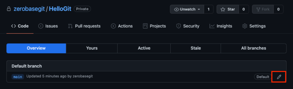 Default branch : 수정이 가능하나 다른 팀원들까지 영향을 받으니 신중해야 한다.
