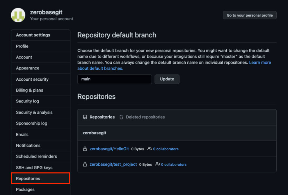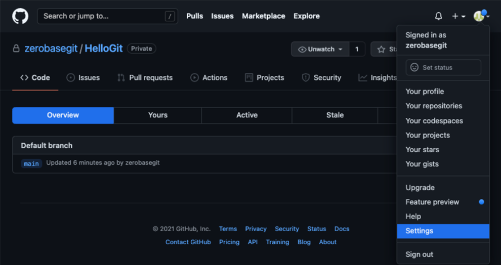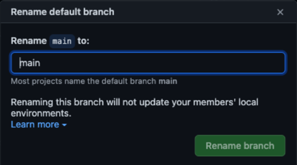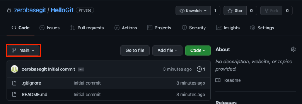 Remote Repository 를 생성할 때 Default Branch 이름을 설정할 수 있음