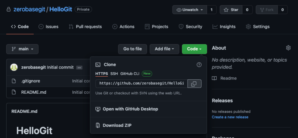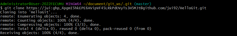 Local Repository 를 생성하지 않은 상태에서 Git Clone 명령을 사용하여 Remote Repository 를 Local 에 복제할 수 있음