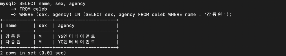 WHERE (a.column1, a.column2, ...) IN (SELECT b.column1, b.column2, ...