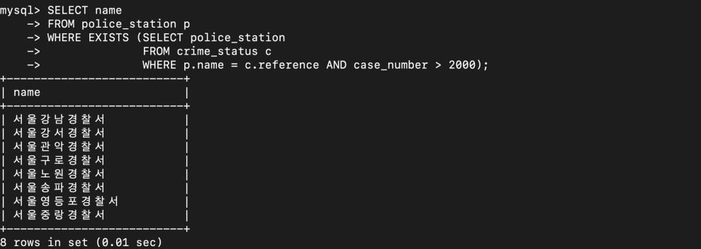 WHERE police_station LIKE '은평' AND crime_type LIKE '강도' status_type LIKE '검거';
