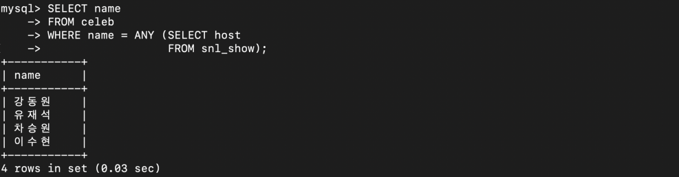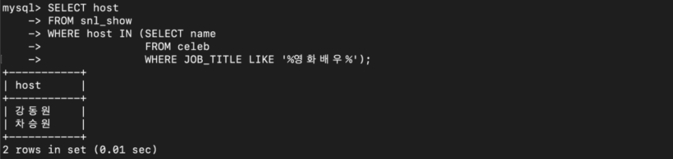 SELECT 절에서 사용하는 서브쿼리. 결과는 하나의 Column 이어야 한다.