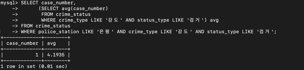 WHERE crime_type LIKE '강도' AND crime_type LIKE '검거') avg