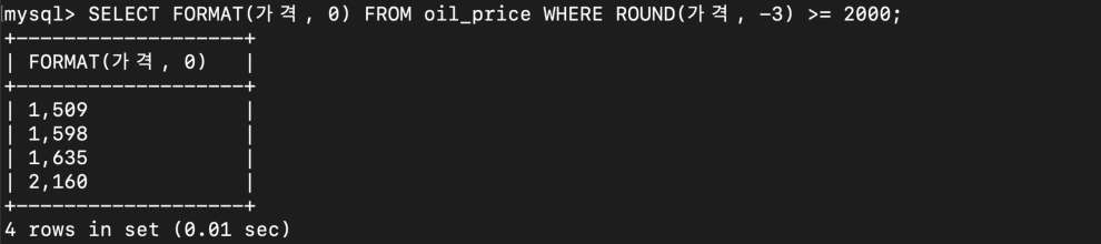 FORMAT : 숫자를 천단위 콤마가 있는 형식으로 반환하는 함수