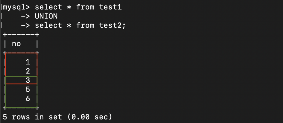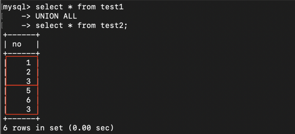 - UNION ALL : 중복된 값도 모두 보여준다.