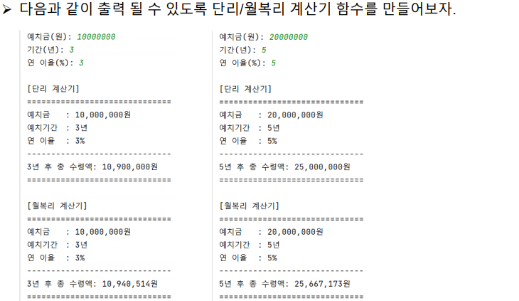 print('[단리 계산기]')