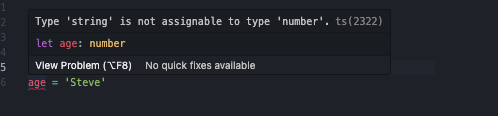 JavaScript는 타입을 직접 지정하지 않기 때문에, JS에서 알아서 인식한다. 'age' 변수는 당연히 number 타입이며, age에 'Steve'를 재할당하면 당연히 string 타입으로 변환됩니다. 타입을 지속적으로 변경하는 변수는 나중에 오류로 이어질 가능성이 높아서 이를 해결하기 위해 TypeScript를 사용한다.