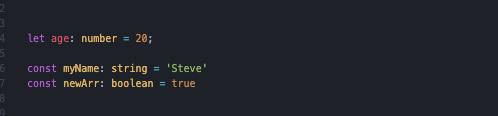 변수에 마우스를 올리면 변수의 타입이 보이지만, TypeScript에서는 변수에 타입을 먼저 지정한 후에 값을 할당하는 문법을 사용한다.